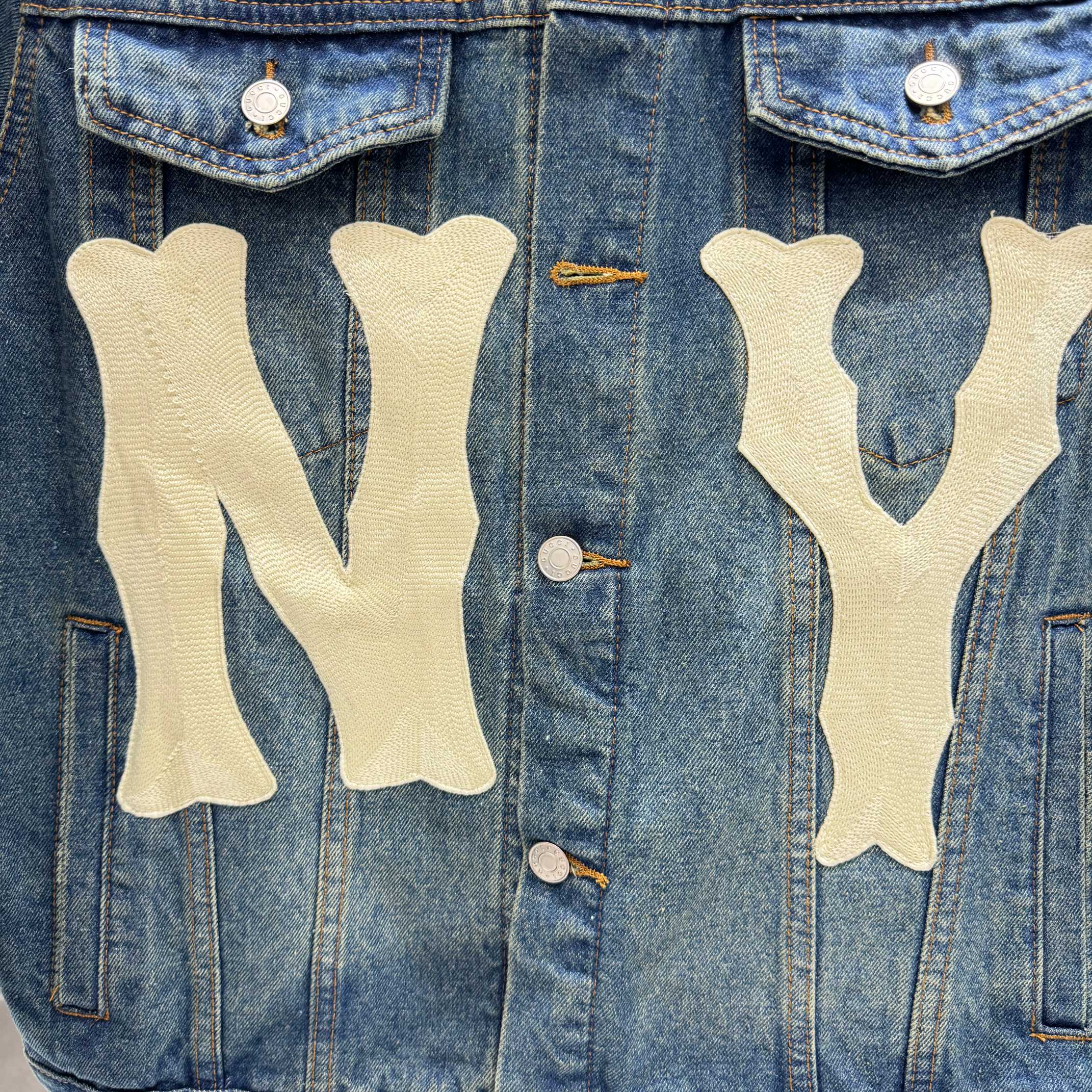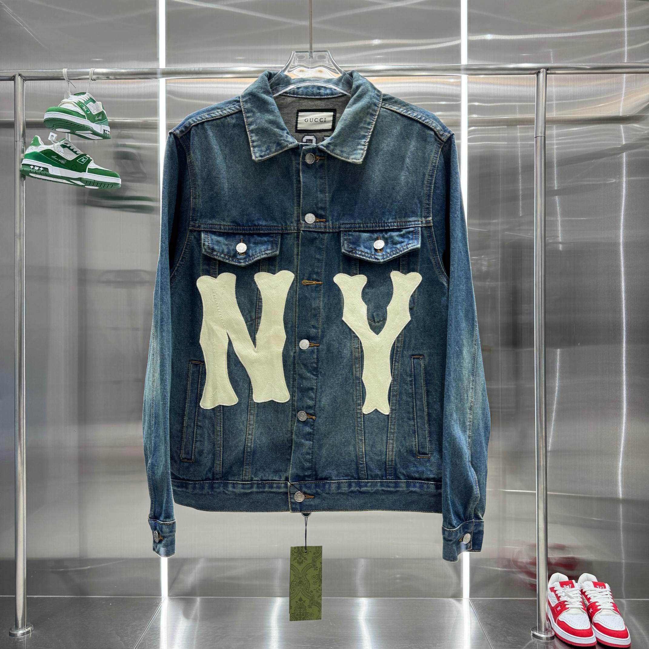Home / GUCCI-Clothing / Gucci NY Yankees joint embroidered patch denim jacket